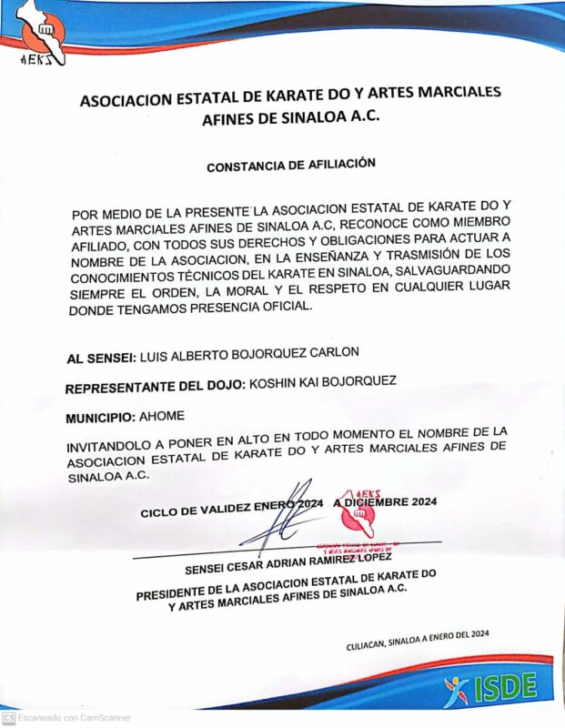 Pocas personalidades en el mundo de las Artes Marciales tan polifacéticas como el Sensei Luis Alberto Bojorquez Carlón, Cinta Negra 5º dan de Karate Shito Ryu, quien radica en Culiacán, Sinaloa y posee grados en otras disciplinas como son Nippon Kempo, Taekwondo y Lima Lama, además de haber incursionado inclusive como Boxeador Profesional. Por si esto fuera poco, el Sensei Luis Alberto es Licenciado en Derecho con Maestría en Derecho Procesal Penal Acusatorio y Oral y es Policía en activo. En su faceta como Profesor de Karate Do Shito Ryu, el Sensei Luis Alberto ha demostrado una gran pasión y entrega en la enseñanza a sus alumnos, a quienes acompaña en los diferentes eventos que Sanciona la Federación Mexicana de Karate que preside la Licenciada Samantha Deciderio Olvera, como ejemplo tenemos la reciente incursión de alumnos suyos en el Torneo Regional 1 que integra el Noroeste y Noreste de Culiacán y que se celebró del 8 al 10 de Marzo 2024 en el Polideportivo UAS Culiacán, donde compitieron los Estados de Sonora, Baja California Norte y Baja California Sur, Nuevo León, San Luís Potosí y por supuesto Sinaloa, como Estado Anfitrión. Los Competidores de Dojo del Sensei Luis Alberto que obtuvieron preseas son: